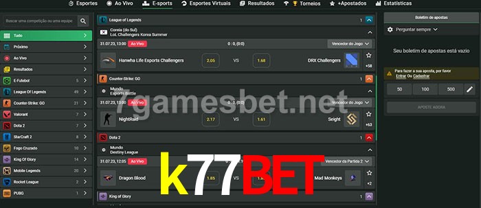 O k77bet oferece uma grande seleção de opções de apostas em e-sports com probabilidades competitivas